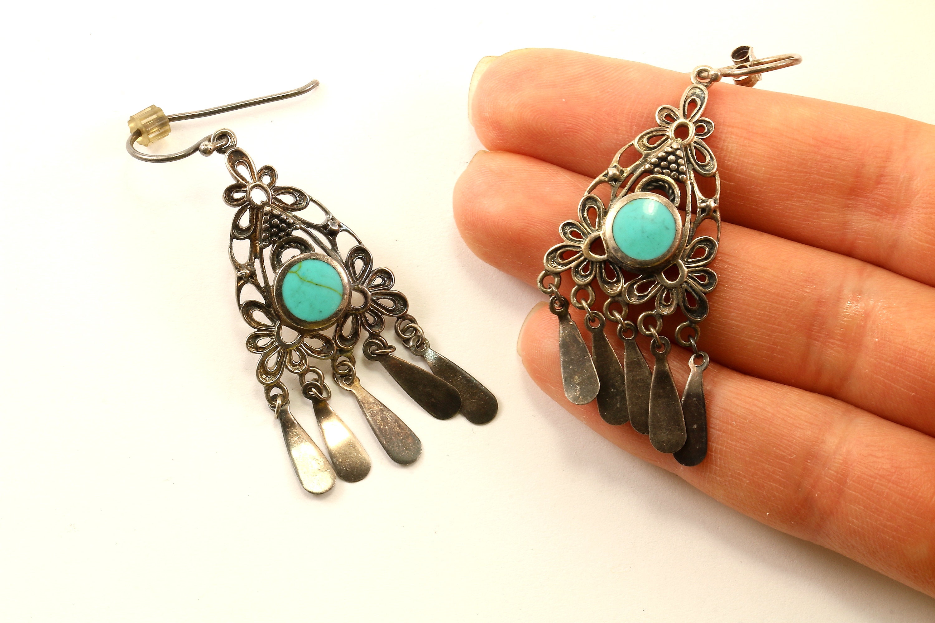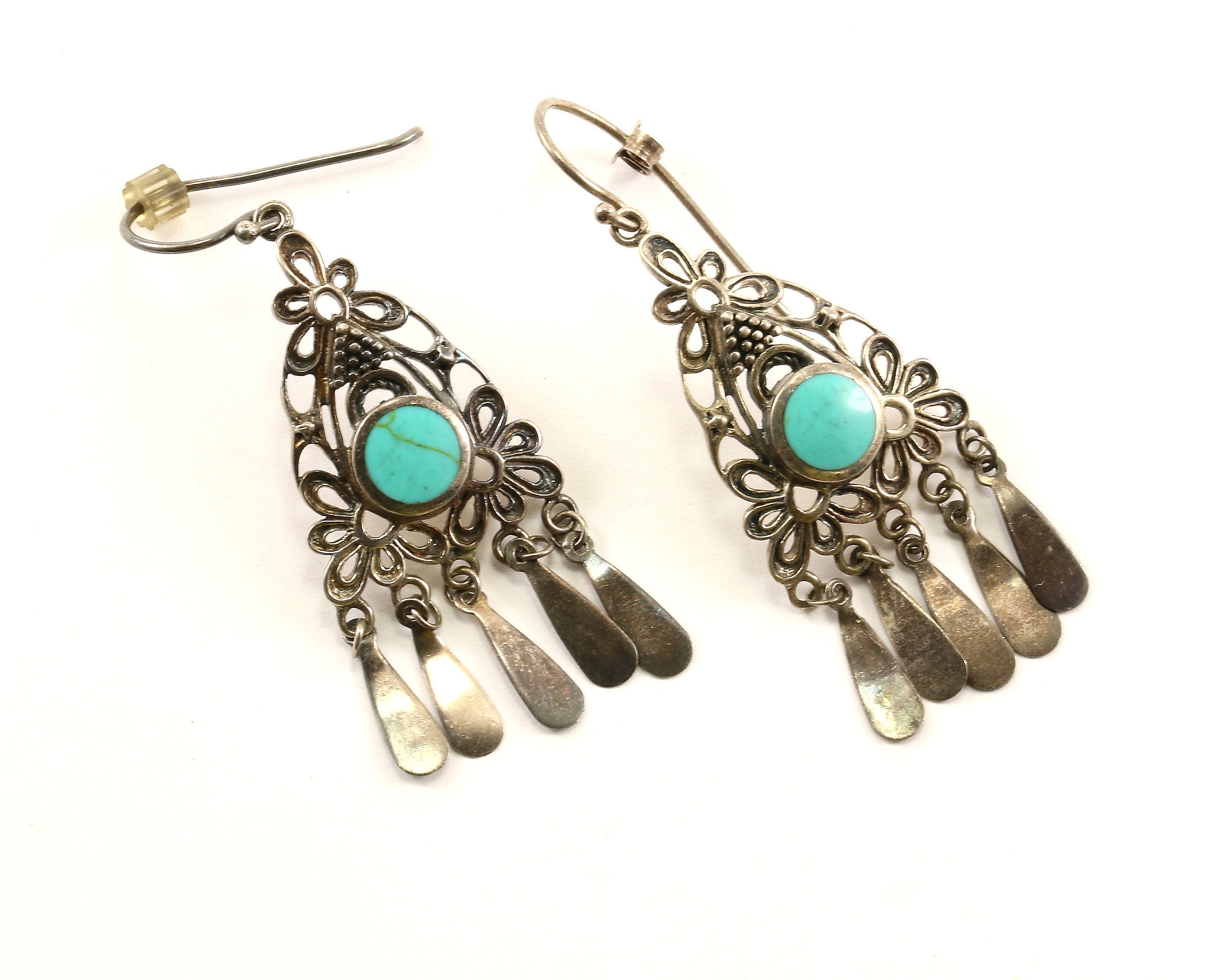 This is Vintage Beautiful Scroll Turquoise Design Drop/Dangle Earrings