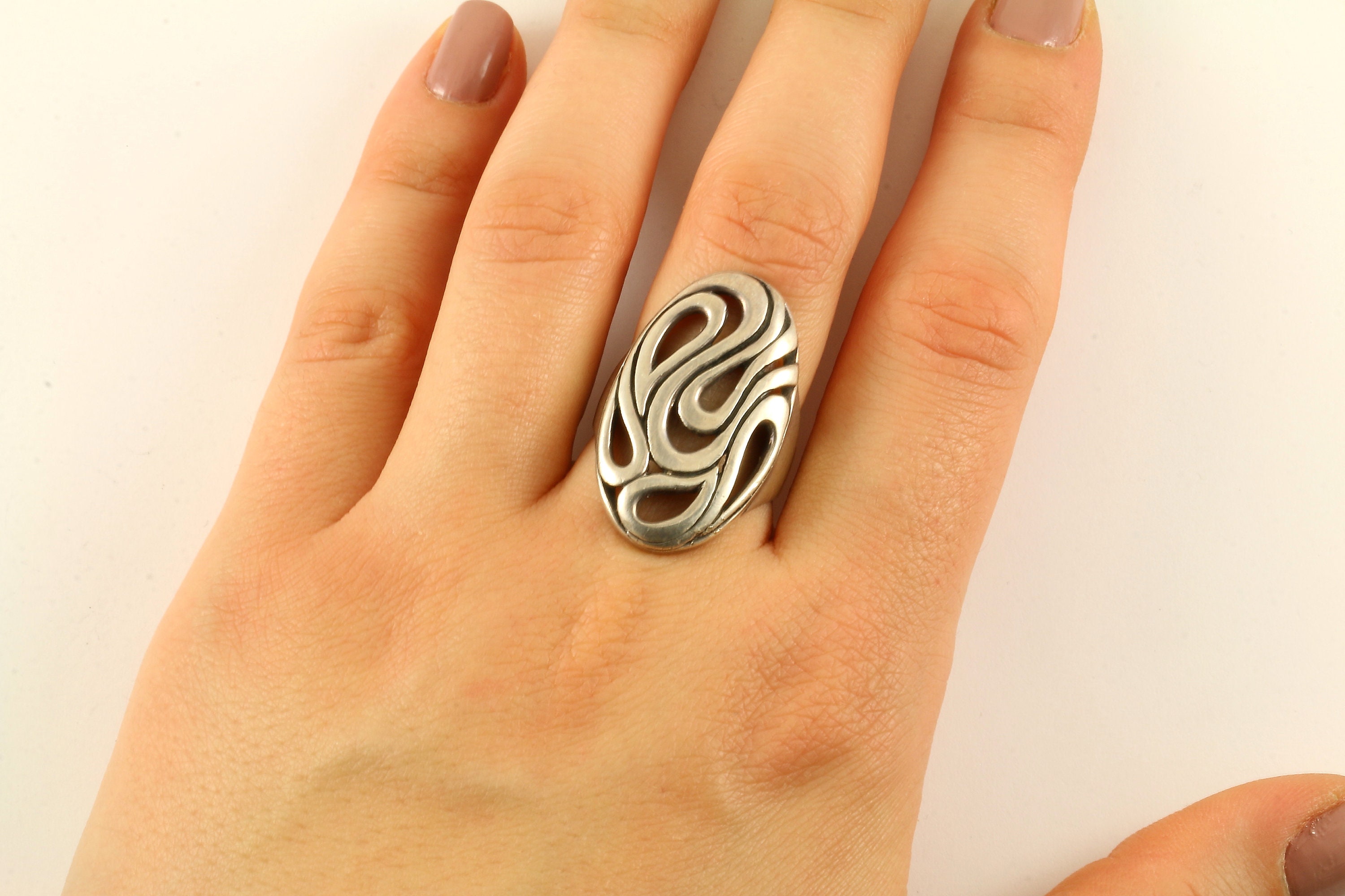 This is Vintage Beautiful Oval Scroll Design Ring
