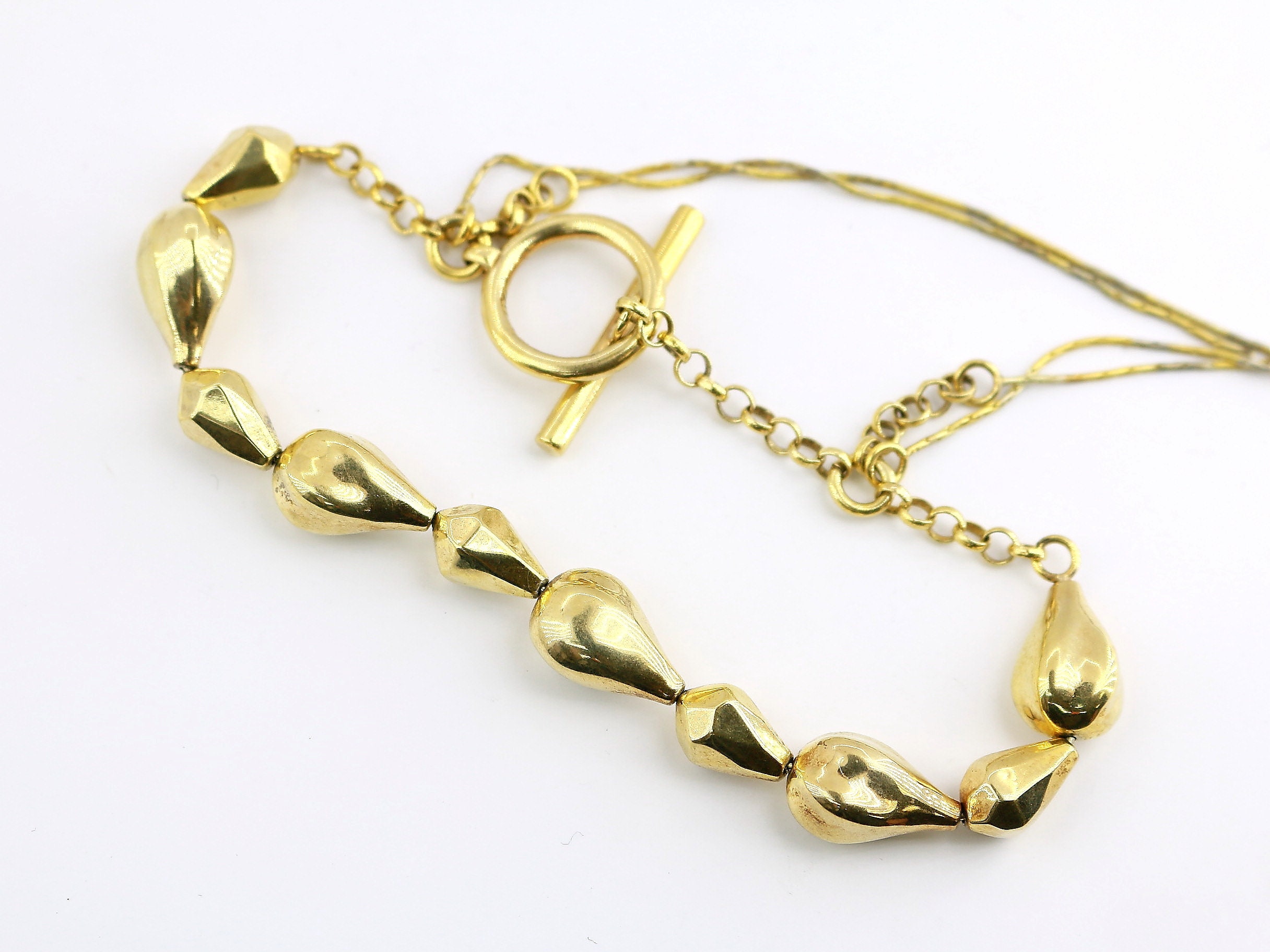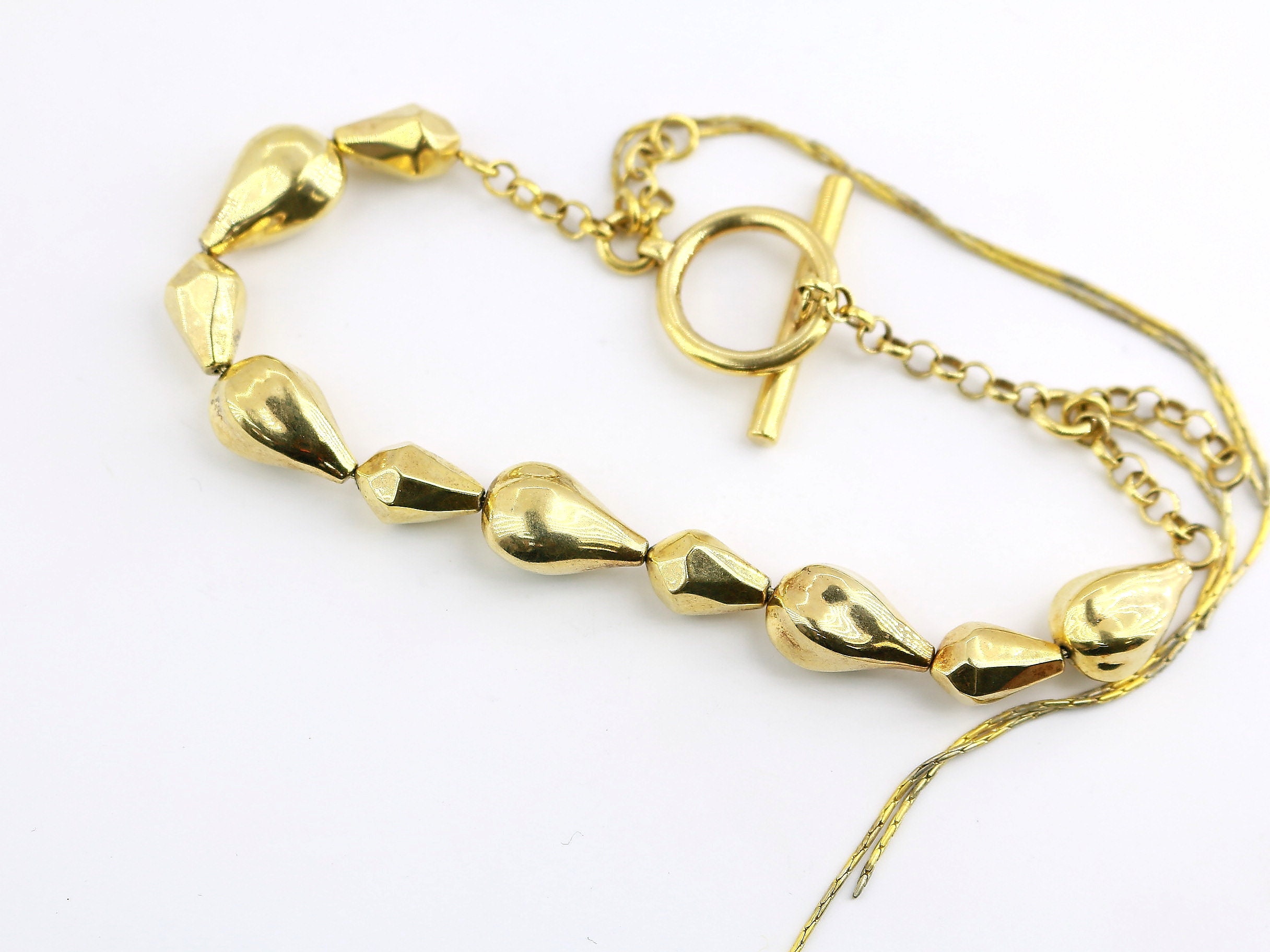 This is Vintage Beautiful Italy Gold Tone Beaded Toggle Design Chain Bracelet