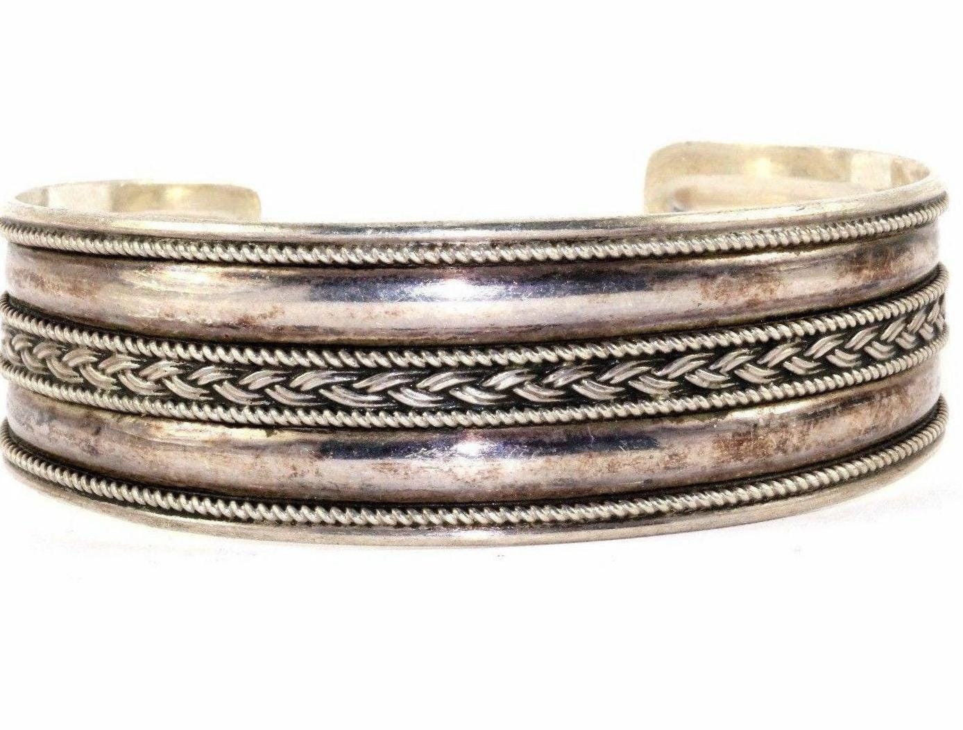This is VINTAGE WOVEN BRAIDED CUFF BRACELET Metal: 925 Sterling Silver Weight: 22.0 grams Diameter: 2.5 in Width: 0.75 in