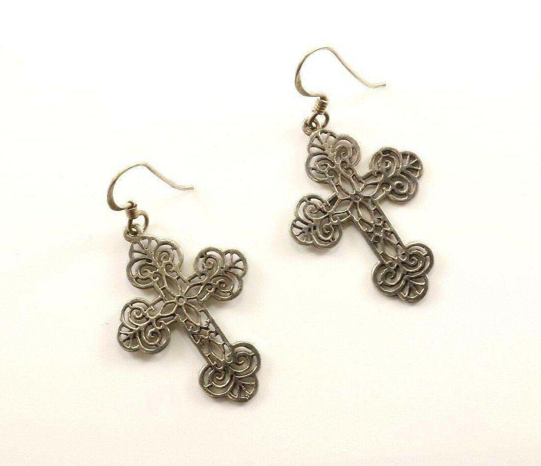 This is Vintage Cross Scroll Design Dangle Earrings Condition: Vintage Metal: Sterling .925 Silver Weight: 3 grams Size: 1 5/8 in Images you see are actual pictures of jewelry you will receive Every purchase comes thoughtfully packaged and ships within 1 business day New York State buyer will be charged sales tax Feel free to contact us with any questions. We are open Mon-Fri 9-5 EST We appreciate your business