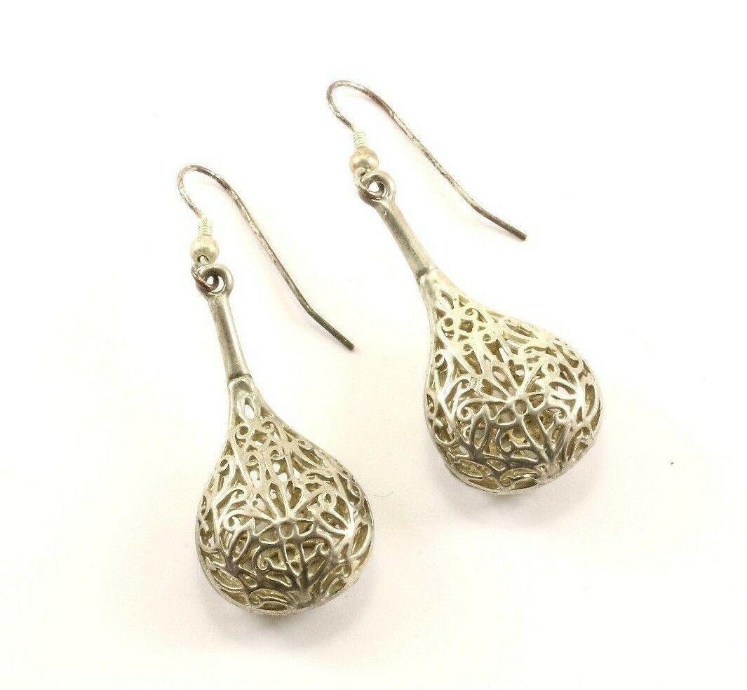 This is Vintage Open Scroll Pear Shape Drop Dangle Earrings Condition: Vintage Metal: Sterling .925 Silver Weight: 10.4 grams Size: 2 in Images you see are actual pictures of jewelry you will receive Every purchase comes thoughtfully packaged and ships within 1 business day New York State buyer will be charged sales tax Feel free to contact us with any questions. We are open Mon-Fri 9-5 EST We appreciate your business View more great items
