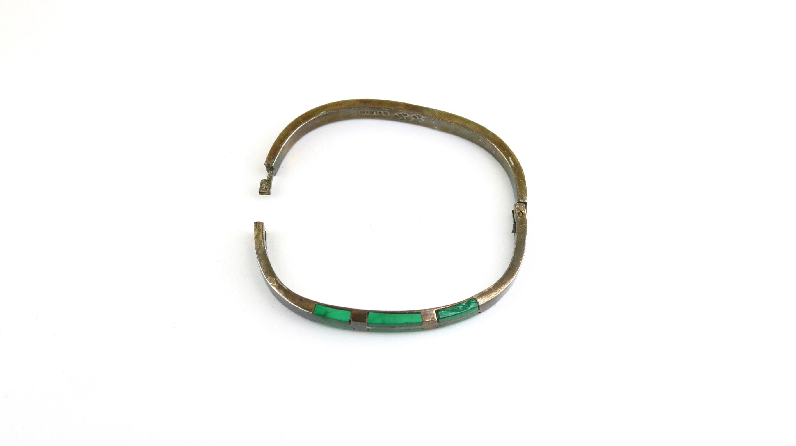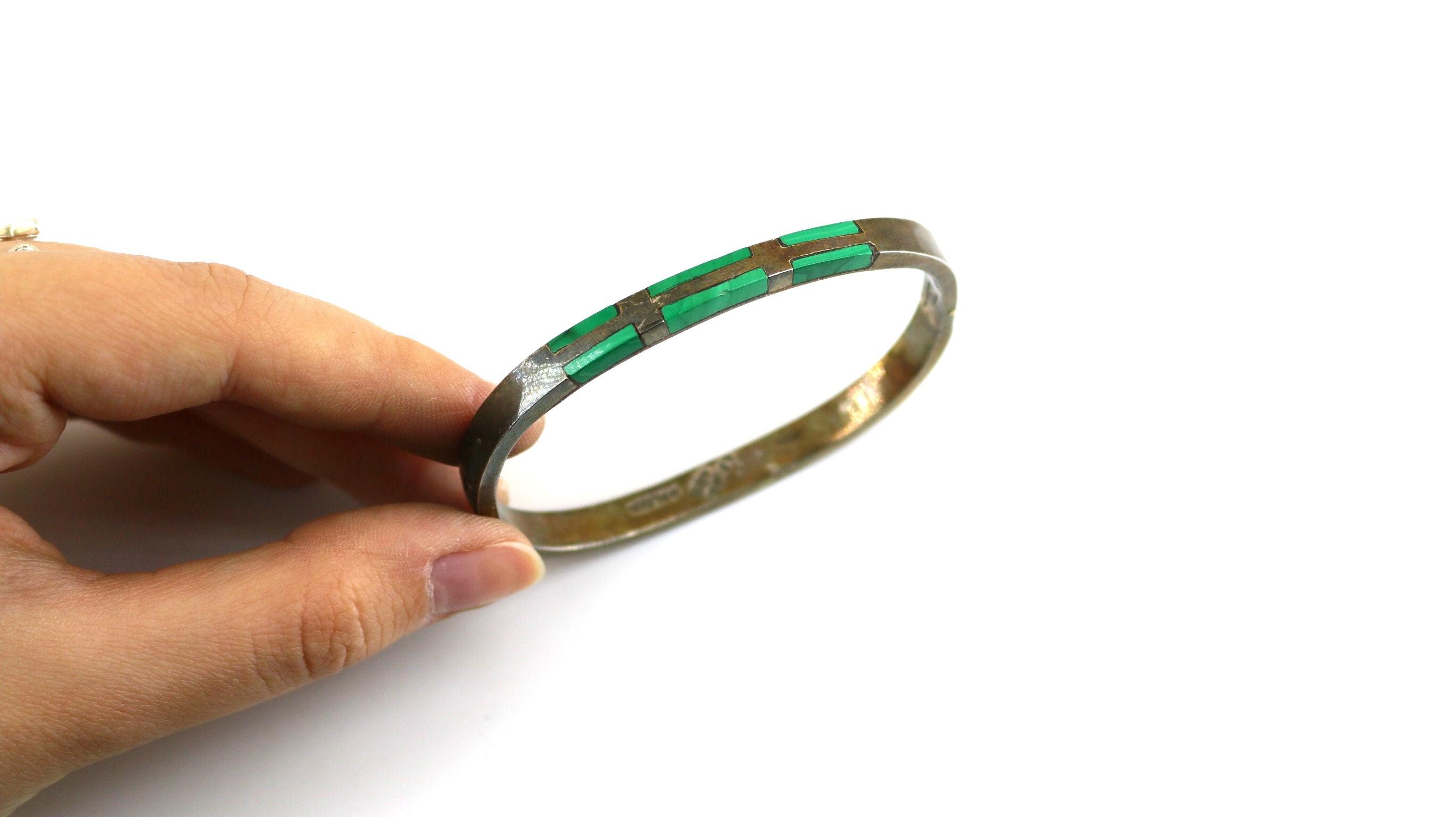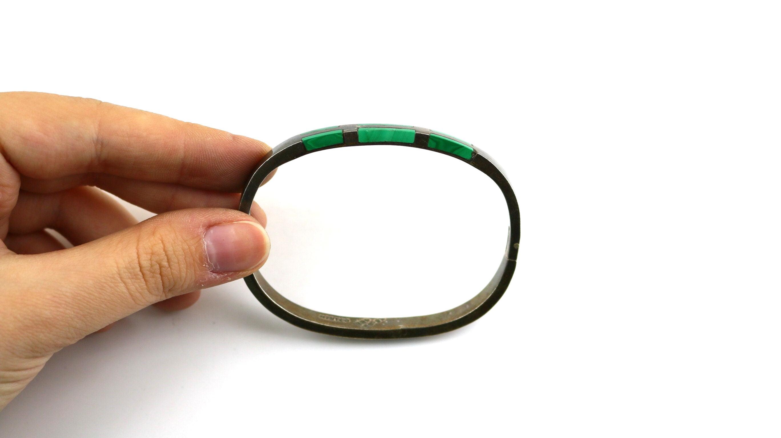 This is Vintage Beautiful Simple Oval Green Malachite Stones Design Bracelet