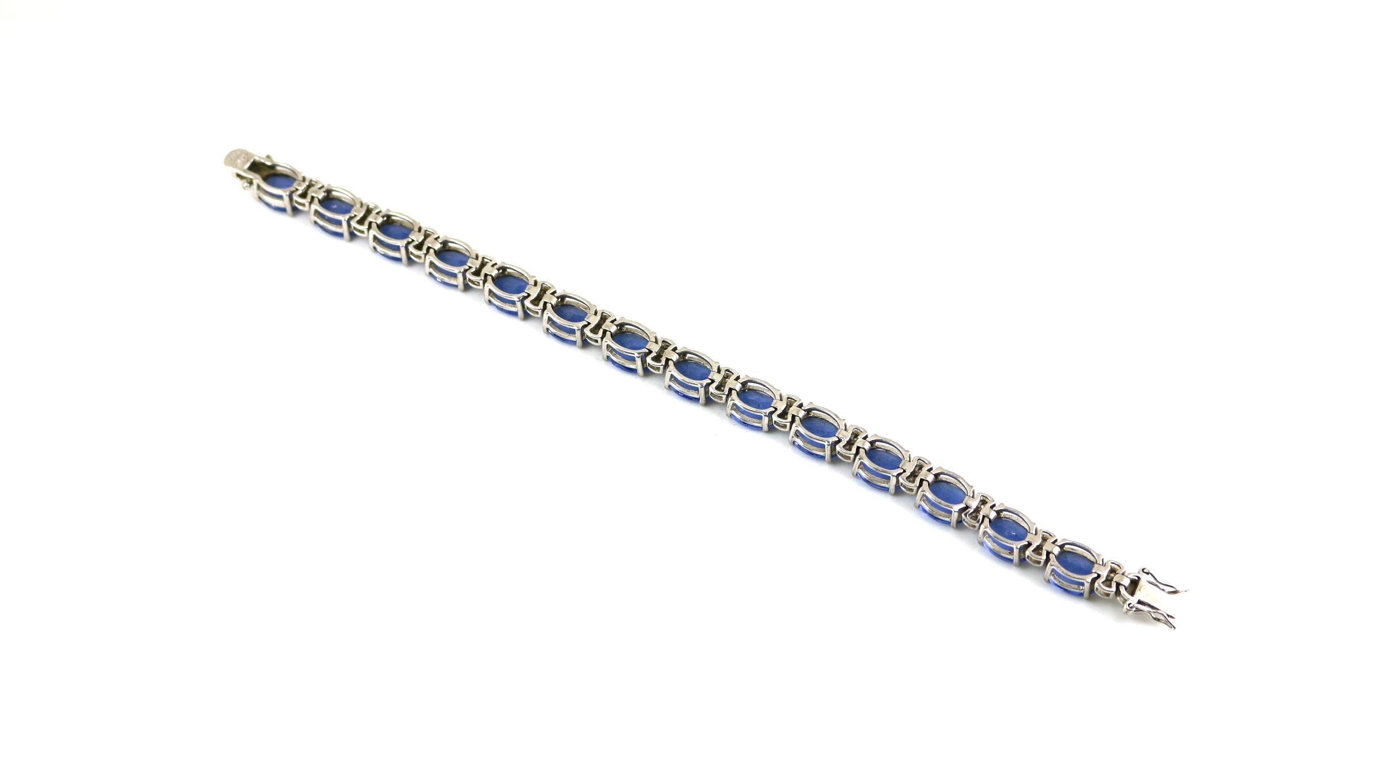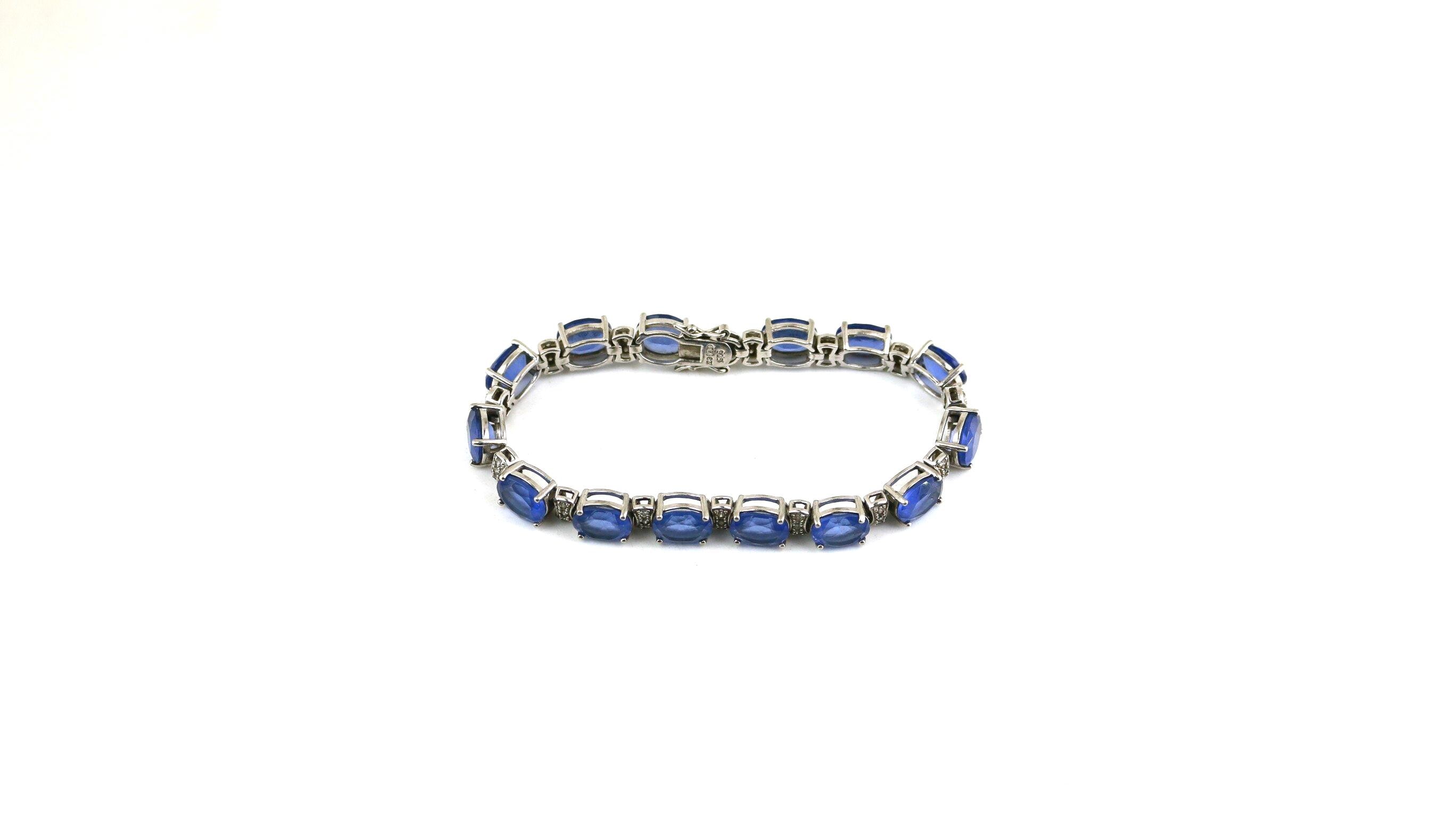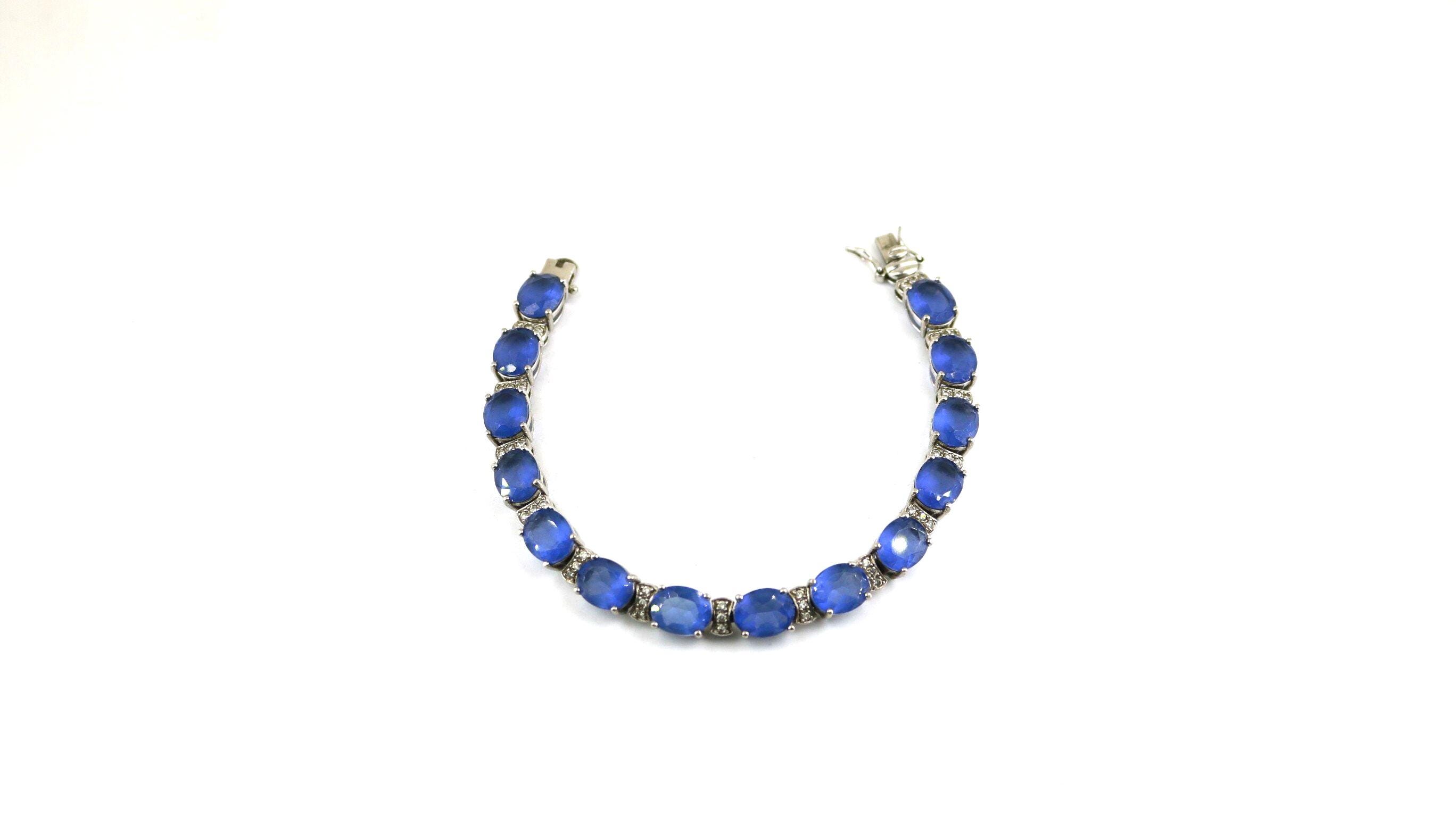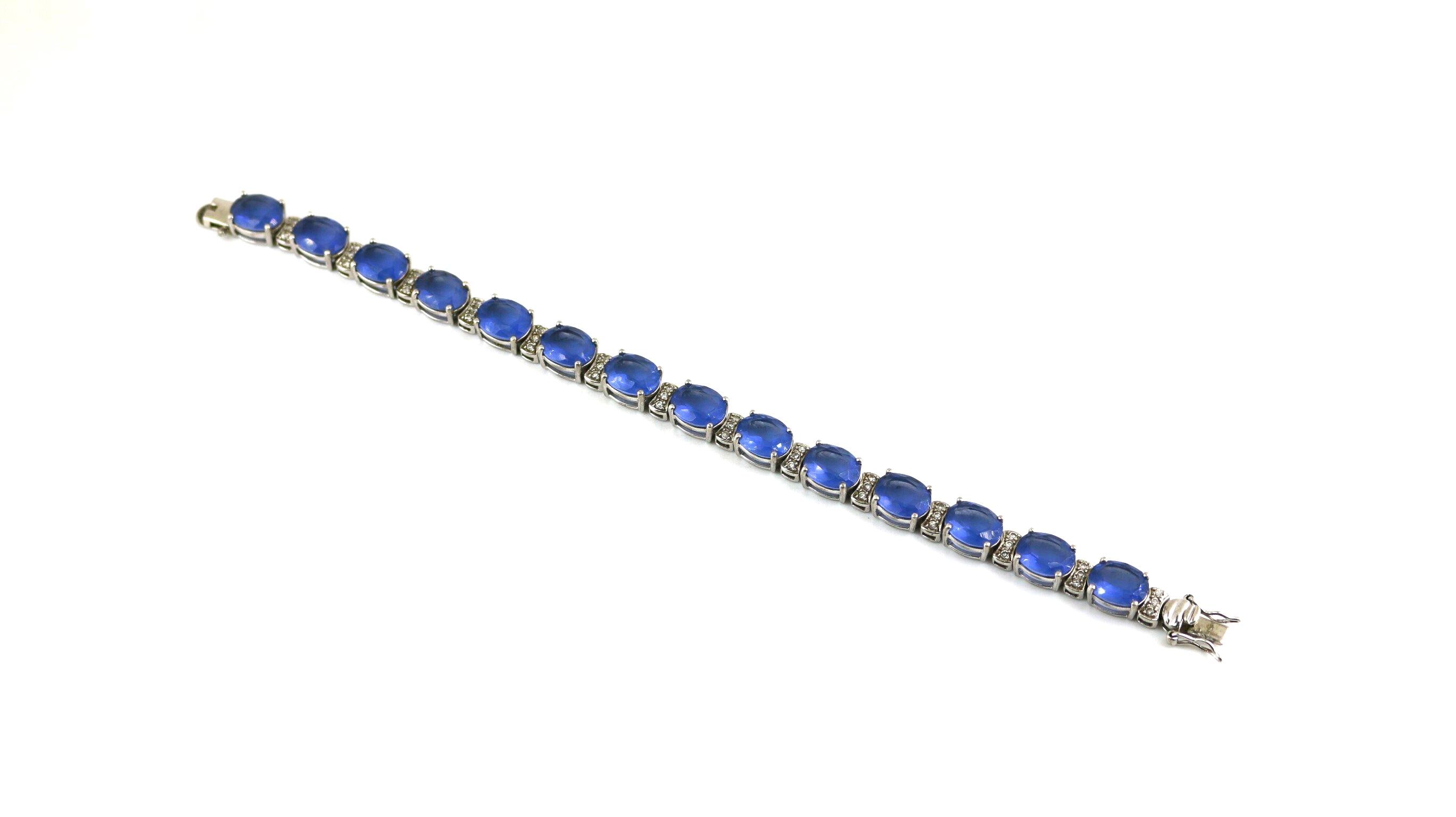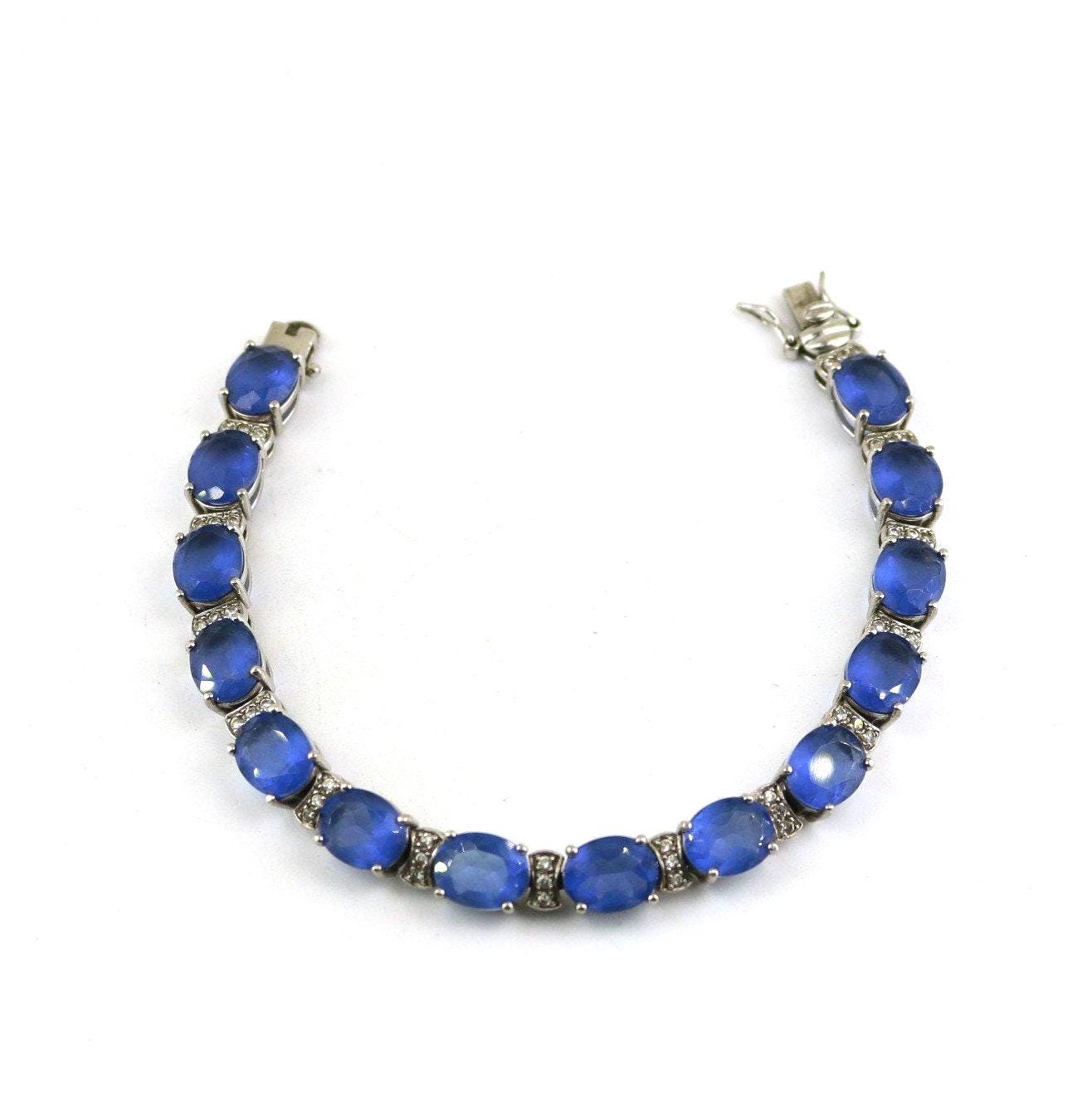This is Vintage Oval Blue and White Crystals CZ Design Tennis Chain Bracelet